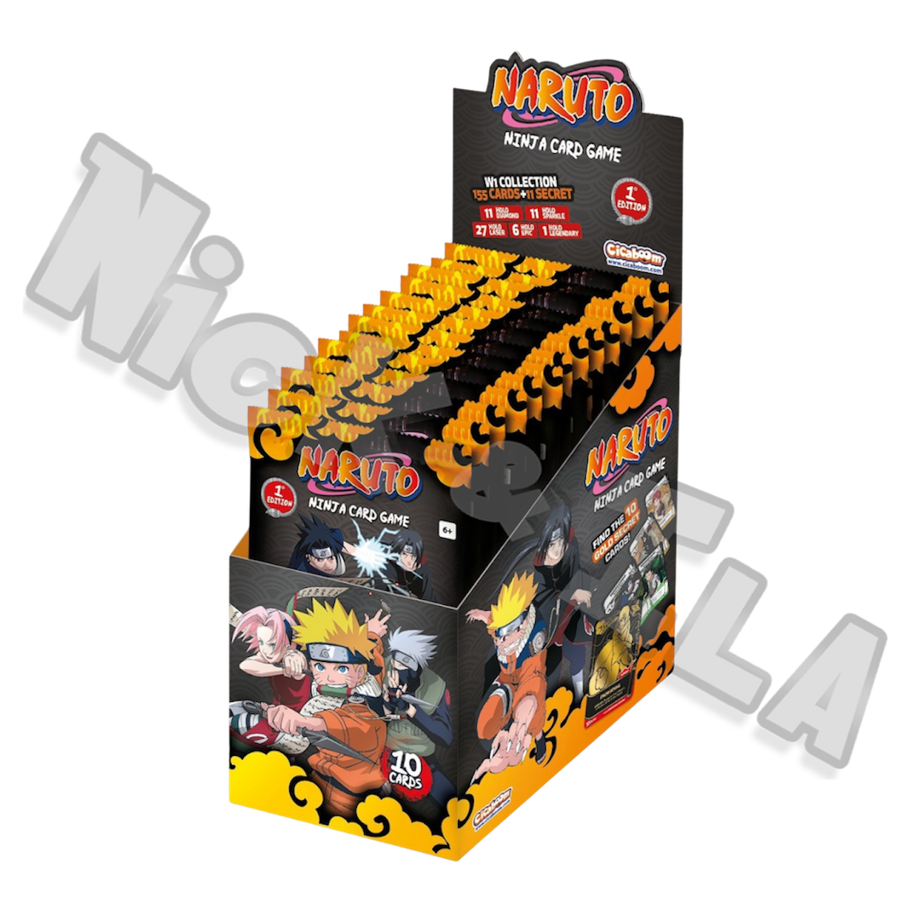 Contenuto di ogni Booster Pack: 1 Carta Missione 4 Carte Comuni 3 Carte Non Comuni 1 Carta Rara, Segreta o Leggendaria 1 Carta Holo Variant per espandere la tua collezione o rafforzare la tua strategia ninja, con la possibilità di trovare carte Rare, Segrete e persino la leggendaria Gold K, realizzata in vero oro 22 carati